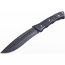 В комплектацию ножа входят прошитые и проклепанные кожаные ножны черного цвета, с подвесом на ремень.