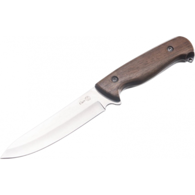 Нож «Сыч» представитель серии туристических ножей, изготовленных по принципу: «ничего лишнего» Широкий клинок одинаково эффективен для кола и реза. Накладки выполнены из кавказского ореха и закреплены в двух точках на винты. Простой, надежный и лаконичный нож «Сыч» предназначен для использования в любых климатических зонах при любых погодных условиях. Общая длина: 260 мм, длина клинка: 130 мм, толщина клинка: 2,3 мм, рукоять: дерево, сталь AUS-8.